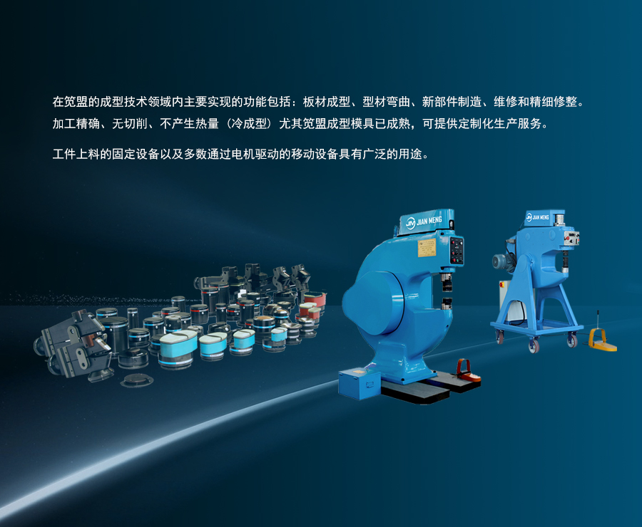 公司主要生產(chǎn)制造:PF350異形曲面快速成形機(jī),PF665雅高成型機(jī),收邊機(jī),放邊機(jī),校形機(jī),鈑金整形機(jī),球面成形機(jī),高速成型機(jī),金屬整平機(jī)等設(shè)備行業(yè)應(yīng)用
